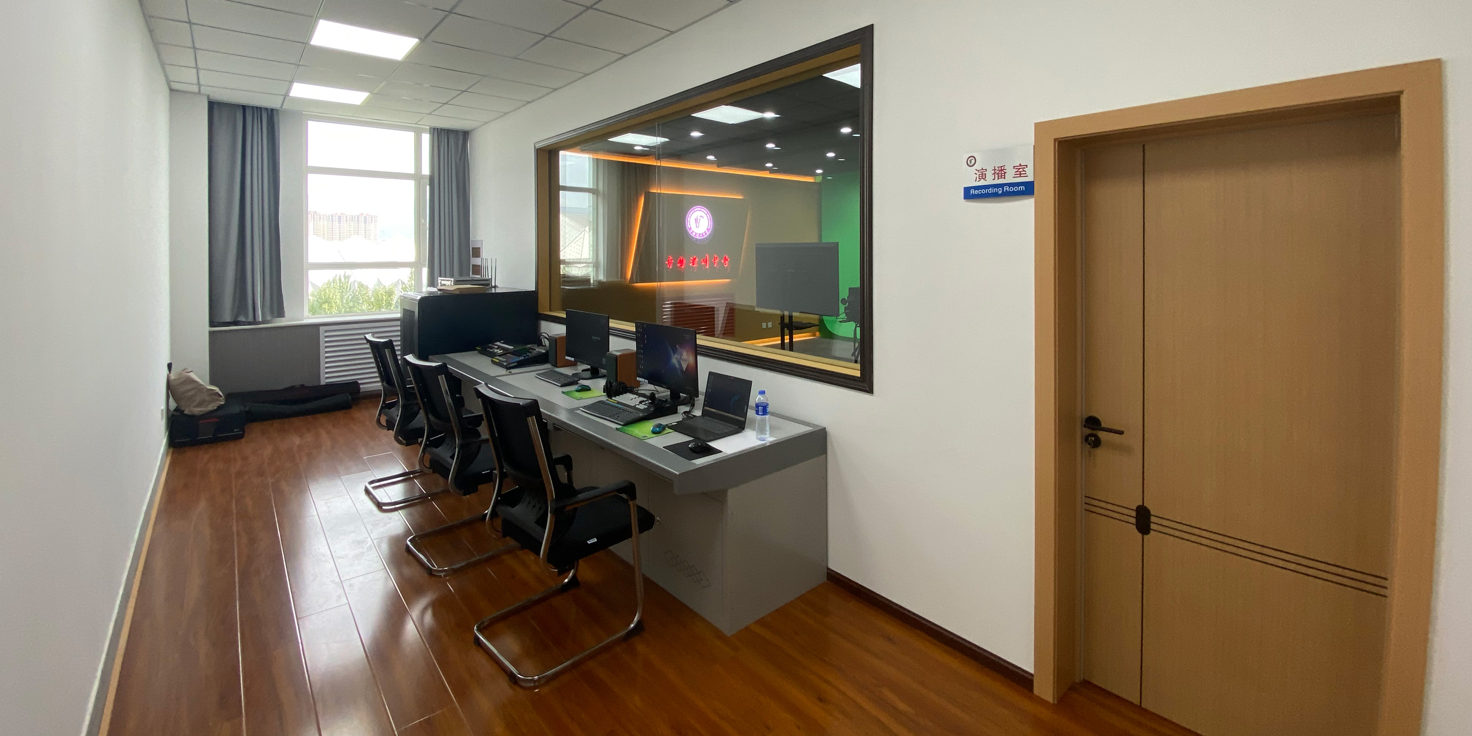 录音棚部分:系统组成上,录音棚是为创造特定的录音环境声学条件建造的专用场地,搭配专业的录音设备构建起完美的录音棚系统;在功能区分上,录音棚由录音室和控制室两部分组成:录音室主要用于多声道声源的采集,设有各种类型的拾音话筒和头戴耳麦、耳机分配器等设备;控制室用于采录编全过程的操作和控制,兼作后期节目制作,主要设备包括数字调音台、音频工作站、后期制作、数据传输和内部通话系统等。