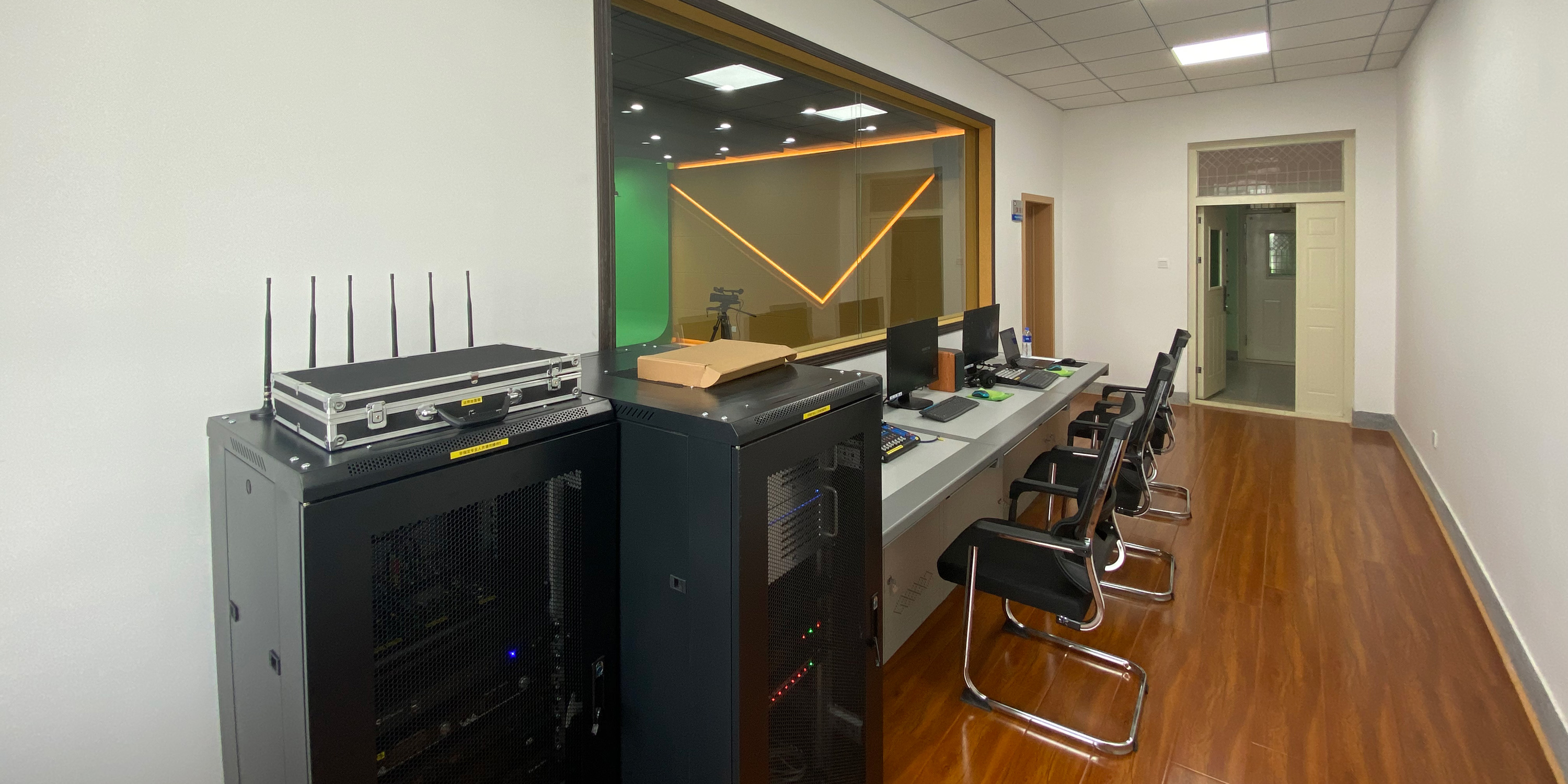 视频部分:为实现校园电视台节目制作功能,拥有独立的特技切换台和摄像机,摄像机采用2机位的摄像系统实现节目播报及访谈类节目的制作。