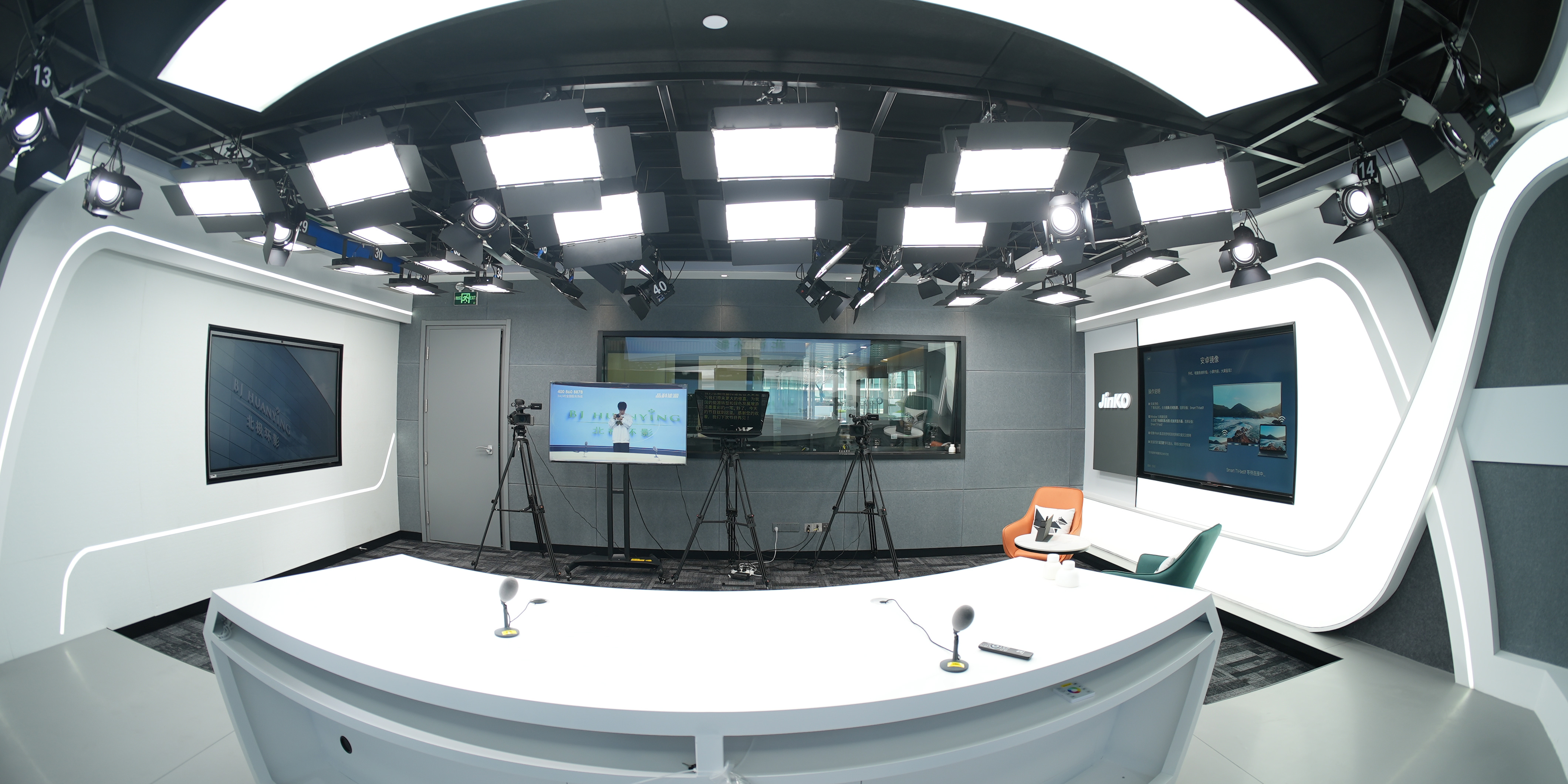 晶科全媒体演播室是集新闻制作、电视访谈、虚拟拍摄等节目为一体的专业类综合演播室。作为专业类演播室,在达到电视节目制作的各种专业技术的同时,还应兼顾演播制作区的有效使用面积、操作使用的便利性和安全性,提供舒适的工作环境,从而保障制作工作的顺利进行,提高制作的质量和效率。